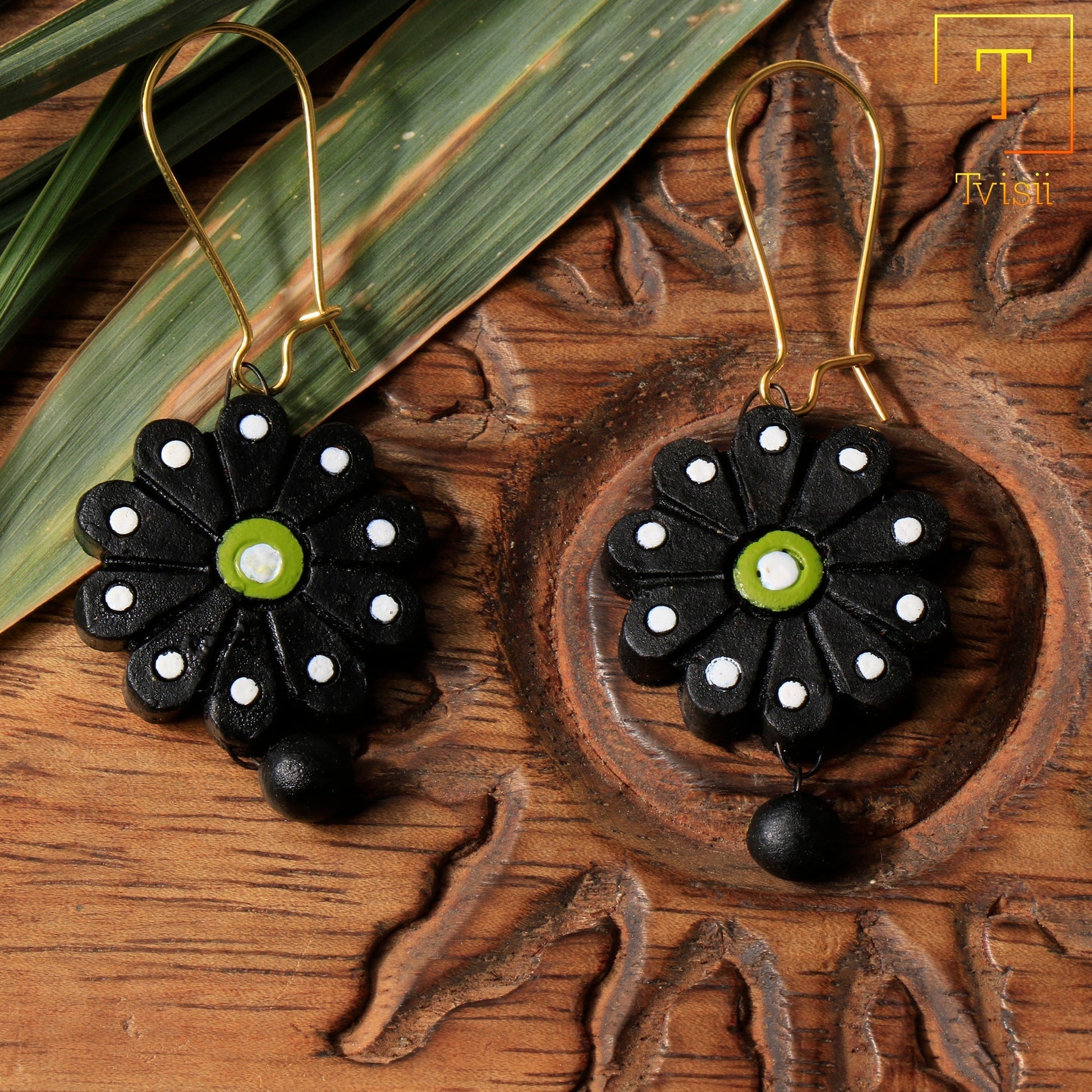 These black and white������ gorgeous looking earthen earrings are made up of brownish red coloured and unglazed clay . They have been beautifully crafted by the very talented karigars of Madhya Pradesh using #deshkimitti. They're pure markers of #madeinIndia . #BeVocalForLocal and buy from our beautiful Argil C