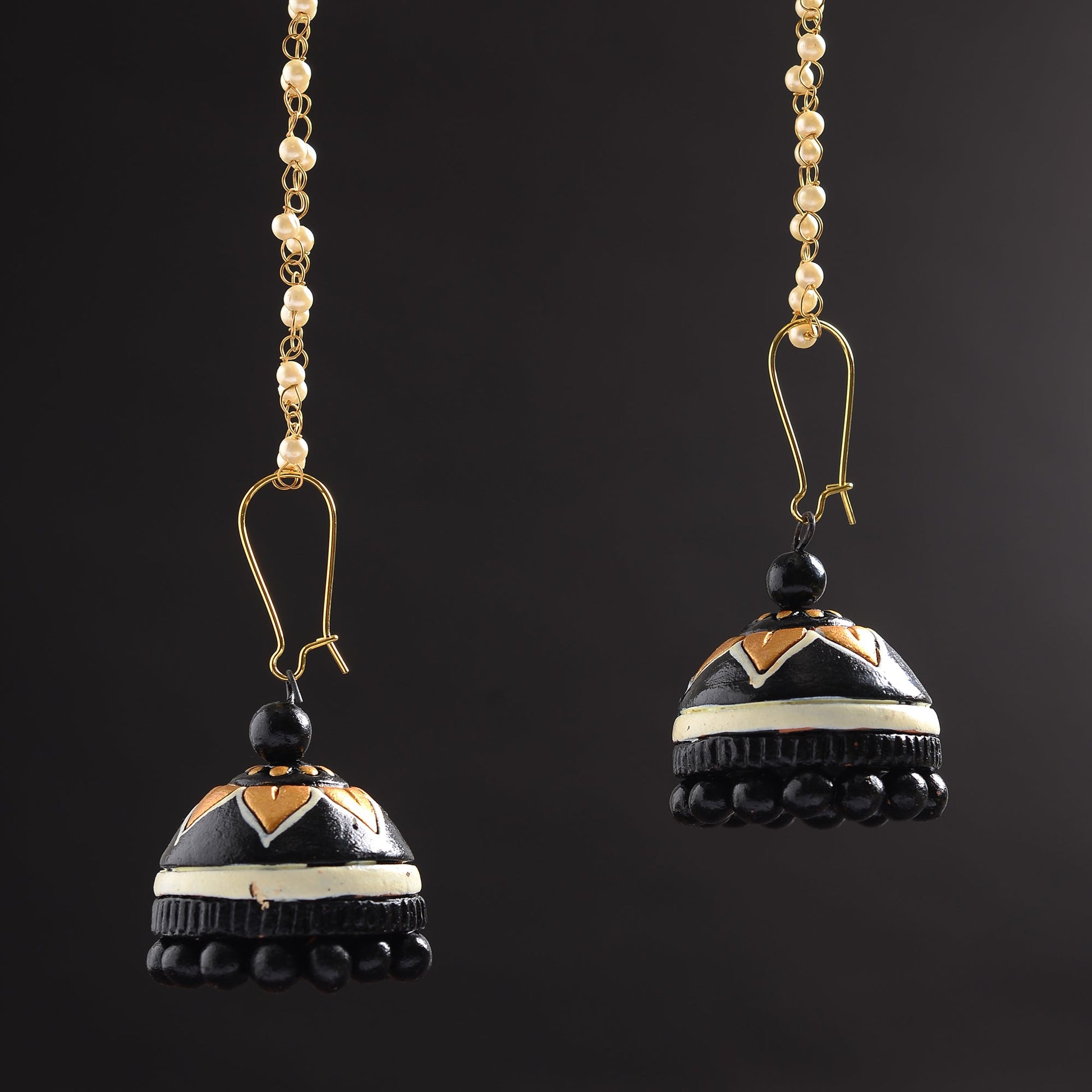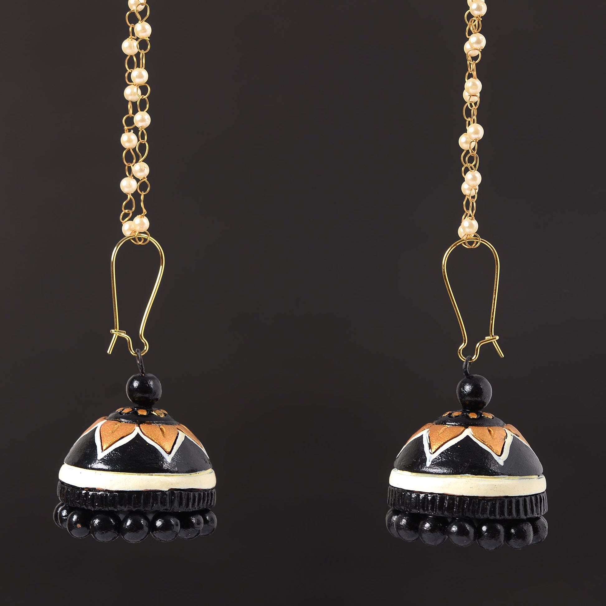 These jhumki shaped earthen earrings are so marvellously crafted that once you have your hands on them you're surely to fall in love .They are black in colour which is the fav colour of every fashionable women . They're classy and sophisticated in look and beauty .