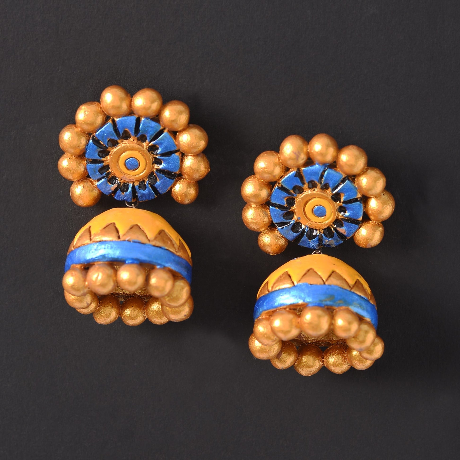 Terracotta literally means ���������baked earth��������� and is made from natural clay, giving it a reddish-brown color.������These jolly and bright earthen earrings here have a jhumki type design with tribal - ethnic vibes .ï¿