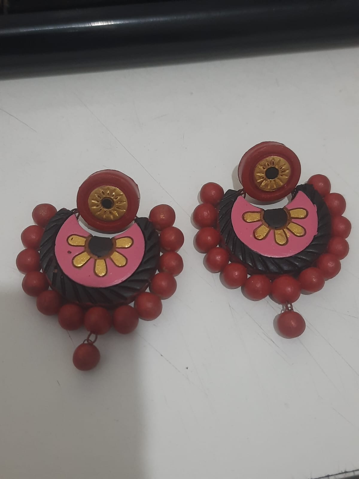 Terracotta jewellery is one������of the oldest forms of jewellery in the world. Terracotta is an Italian word������that means ���ï¿Â"1">and Mohenjodaro civilization. These particular earthen earrings here are so beautiful and serene and widely popular������because of their������ethnic style and beautiful bright color.With current fashion trends that are constantly changing it can be worn with both traditional and casual wears .They have a beautiful half moon structure a
