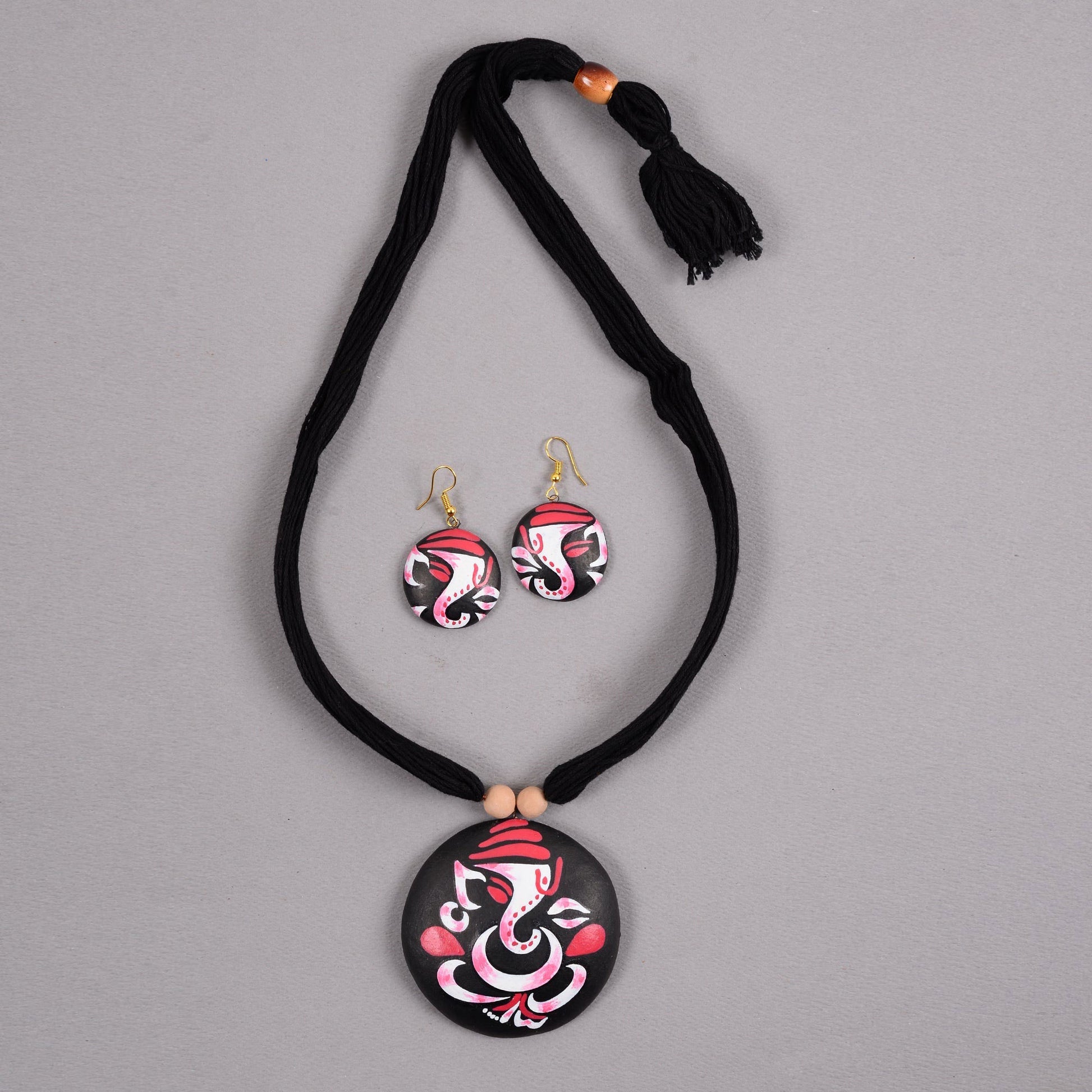 Mridora- Handcrafted clay Ganesha Necklace Set