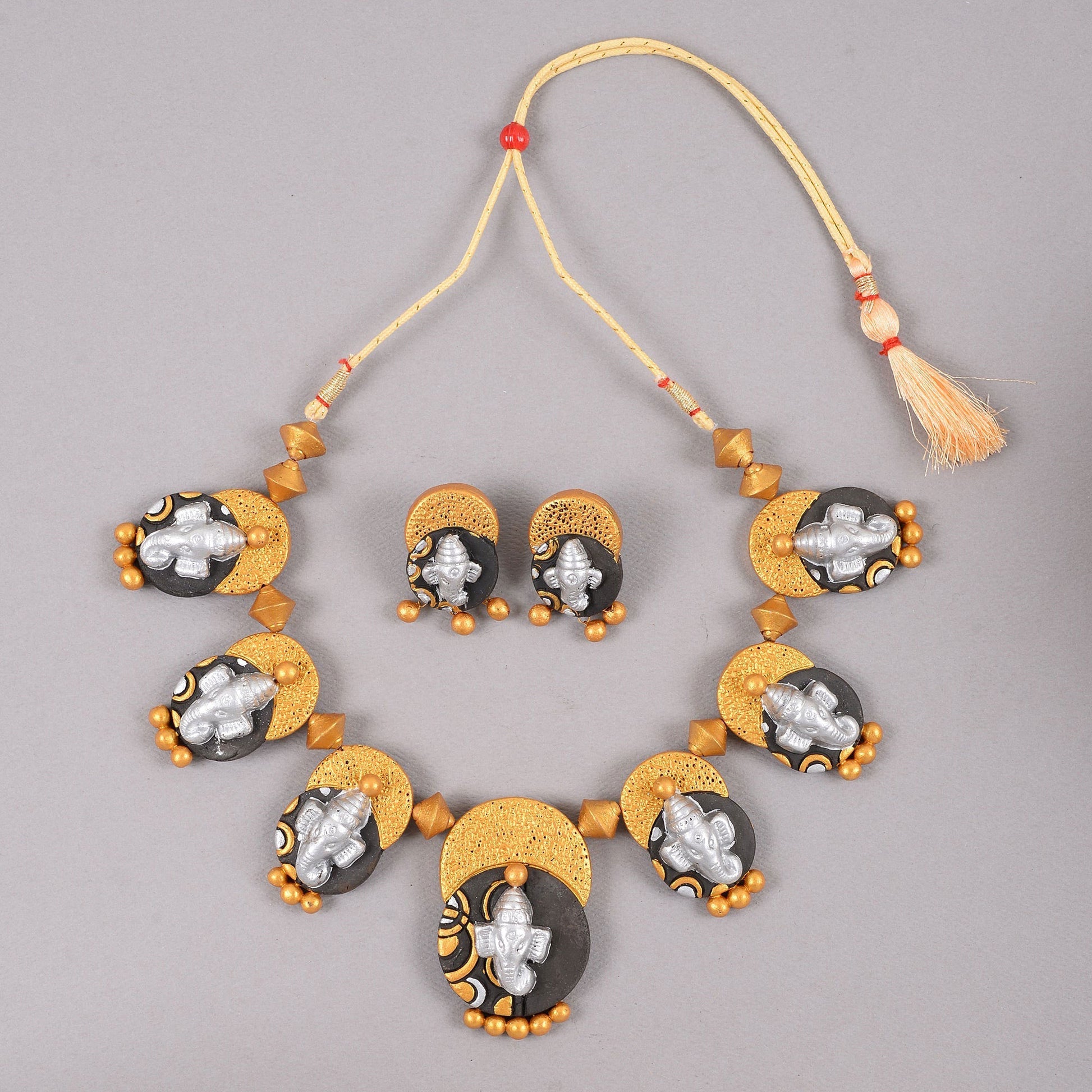 Bhumiya- Handcrafted clay Ganesha Necklace Set